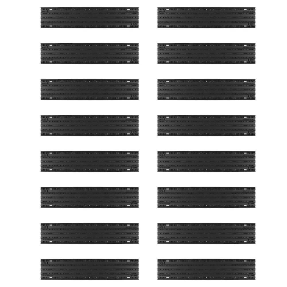 This set includes 16 9-inch wide tracks to accommodate a 14-inch ski stance variance. At the edge of the glides, there is an outside channel that provides a place to channel the glides when used with custom manufactured extrusions or custom set-ups. Optional screw pockets along the edges come with fillers that can be removed as alternate fastening points when the glides need to be cut to accommodate custom lengths.