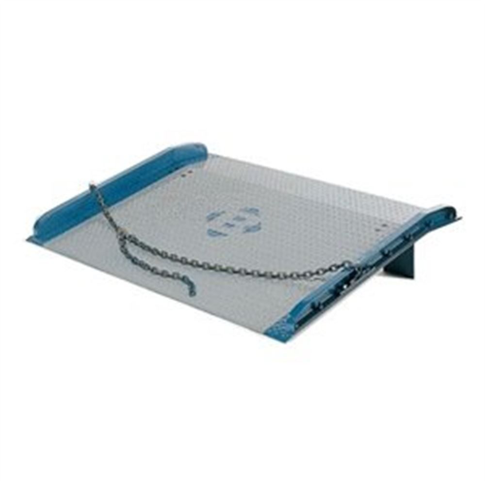 These economical steel dock boards feature all welded steel curbs, locking legs, lifting chains, and are designed for use with 4,000 pound forklifts. To determine what capacity dock board you can use with your forklift you must take the fork truck lifting capacity times 3 and that will equal the capacity of the dock board required with your fork truck! The curbed dock boards are available in widths of 60" & 72" and lengths from 36" to 72". When choosing the width of your dock board, we recommend 12 to 18" wider then the widest load that will be on the board for improved maneuverability when loading and unloading. These steel dock boards provide a safe way to access semi-trailers or any other locations when using forklifts or dollies. Increase safety, product life, and work efficiency with these solid curbed dock boards. All portable dock boards and plates are not created equal. Bluff manufacturing is the only manufacturer that has tested their boards and plates and has met the ANSI standard. This means they are in compliance with ANSI standard MH30.2.