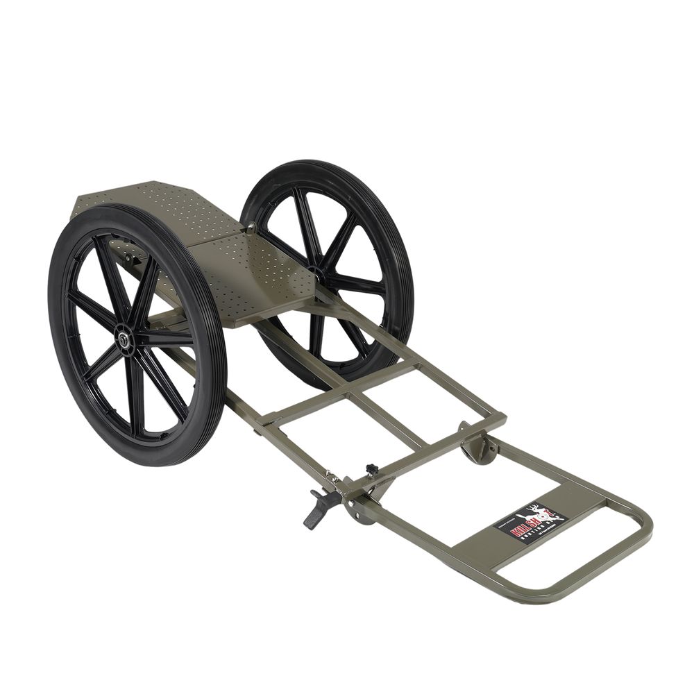 The Throne is an innovative, multipurpose heavy-duty game cart and cargo hauler that quickly and easily converts into a hunting chair with an integrated rubber-padded gun rest. Manufactured from durable steel with two 25" solid rubber tires, this throne can easily carry gear and game over rough, uneven terrain. You will be able to easily convert the throne from cart to chair and back again, making your hunting experience easier, safer, and more comfortable. For added comfort while hunting, check out the Kill Shot Padded Throne Cushion!
