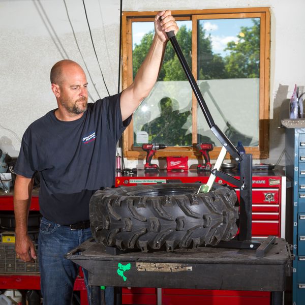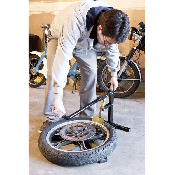 - Breaks the bead on motorcycle tires, trailer tires and other small tires