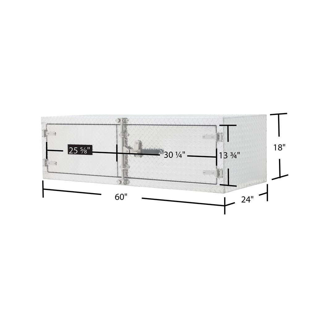 Add external storage to the underbody of flatbed or step deck trailers with the diamond plate HD Ramps Lockable Underbody Trailer Tool Cabinet. This 60" W x 24" D x 18" H toolbox is ideal for holding straps and other equipment when you're on the go and is manufactured from diamond plate aluminum with 3mm corrosion protection.