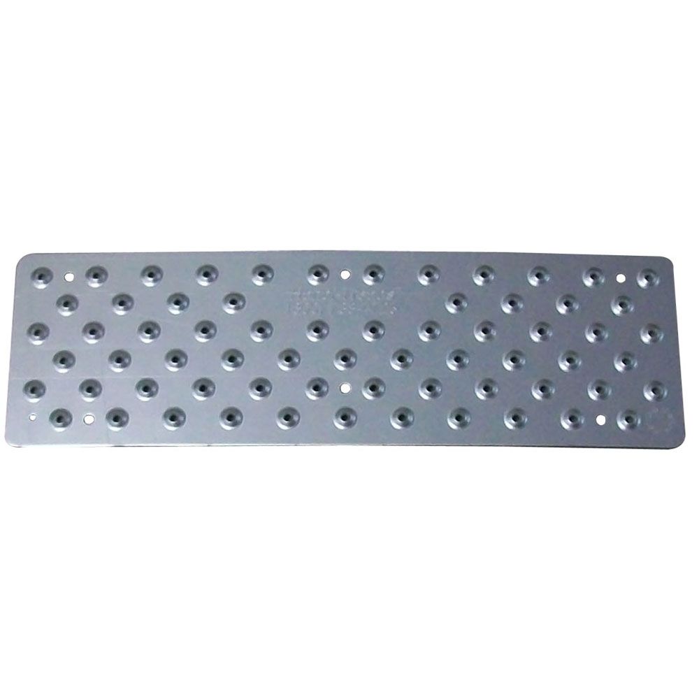 Improve the safety of walkways, steps, decks, and more with non-slip pads. These non-rusting aluminum safety treads can be easily installed on any type of surface, indoors or outdoors, for home or commercial applications. Reapplying non-skid tapes, adhesives, and salt can get expensive and time-consuming. Non-slip pads have a lifetime warranty and can be installed in minutes. Simply drill the pads into place using appropriate hardware (not included; #8 stainless steel screws are recommended for wood; Tapcon anchors are recommended for concrete installation). These treads are available in a plain aluminum finish.