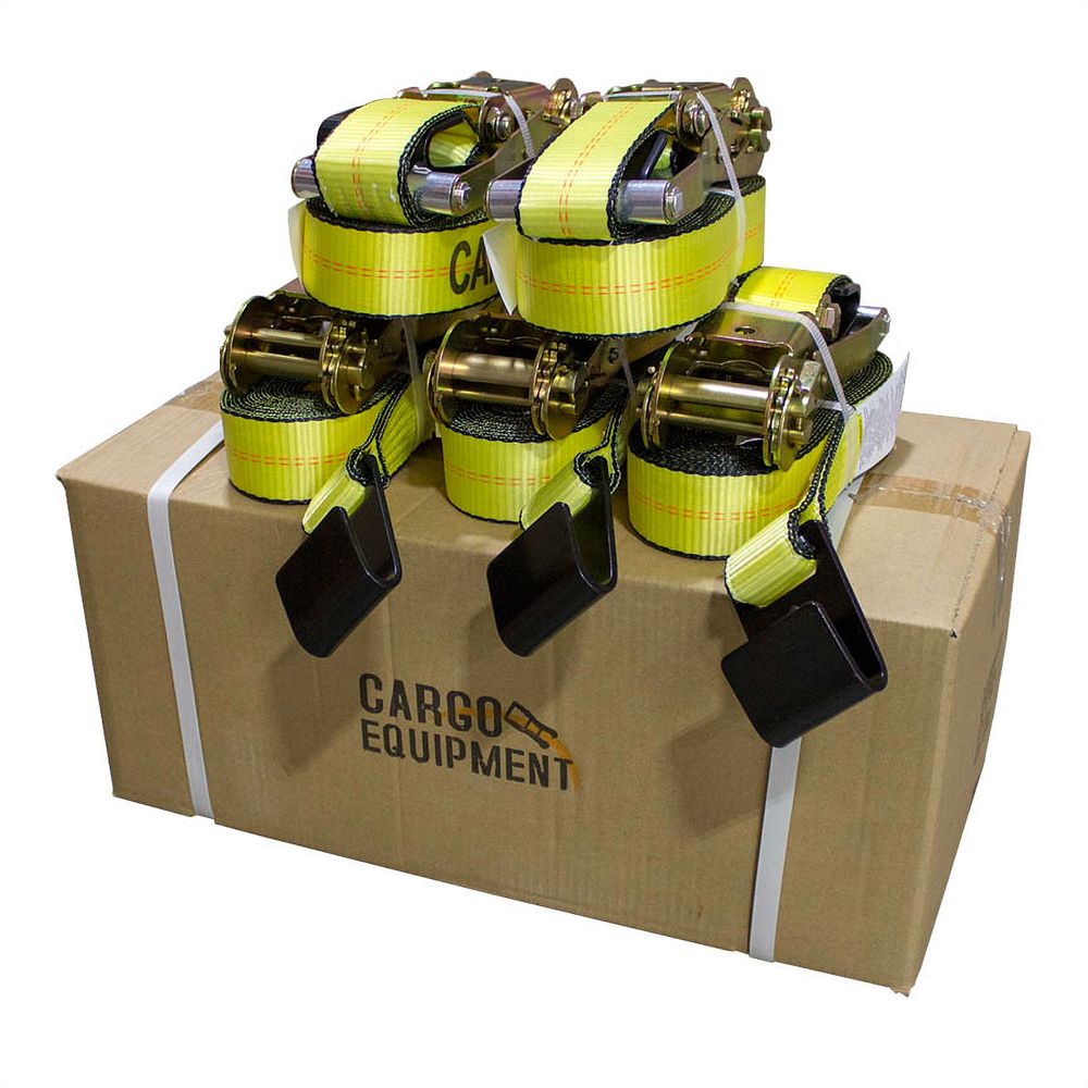 2" x 30' Ratchet Strap with Flat Hooks - Yellow - Box of 10