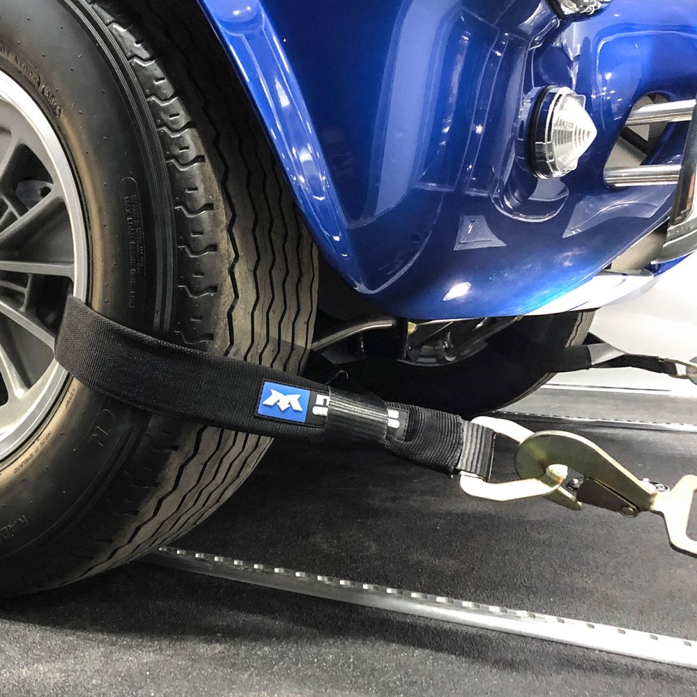 Mud, dirt and sharp edges can fuzz and degrade a strap from the regular chaffing during transport. That's why we add an additional layer of protection around the axle portion of each strap. A full-length Cordura sleeve shields the Axle Strap from excessive wear. To use, pass the sewn looped end of this Axle Strap through the wheel, feed the Delta ring through the loop, then connect your ratchet strap directly to the Delta ring. Remember you should always connect metal to metal; don't connect your ratchet strap to the loop end as that will cause wear to the webbing which may result in strap failure.