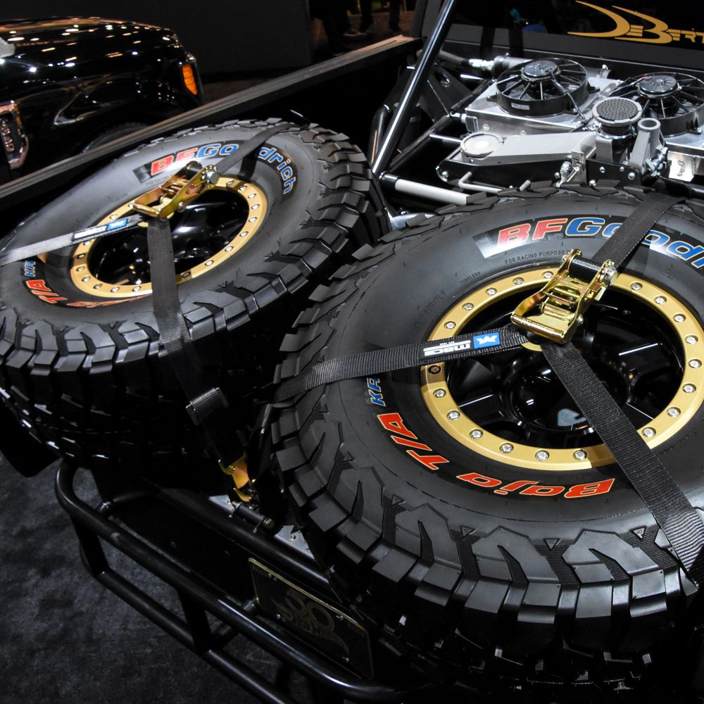 Built so your spare finishes the race with you! The Mac's Y-Strap offers several advantages over typical spare tire tie-down solutions. Blowing a tire in the middle of nowhere is bad enough. Discovering your spare flew off a mile earlier is worse. Y-Straps need to do more than look good holding a spare. Your tie-down system needs to handle the demands of off road racing, and recent changes banning tire balls in certain race series make it even more important to be able to depend on your spare.