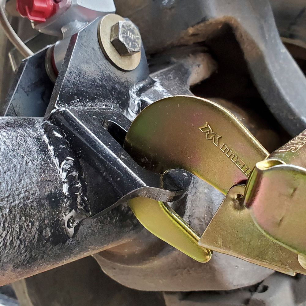 A permanent anchor point that welds directly to the axle. Mac's Weld-On Axle Housing Bracket is made from 1/4" steel tube which is cut on a tube laser then tumbled for a smooth finish. Designed to be low-lying and to perfectly accept our Twisted Snap Hook, the Mac's Weld-On Axle Housing Bracket creates the perfect permanent tie-down point on nearly any vehicle.