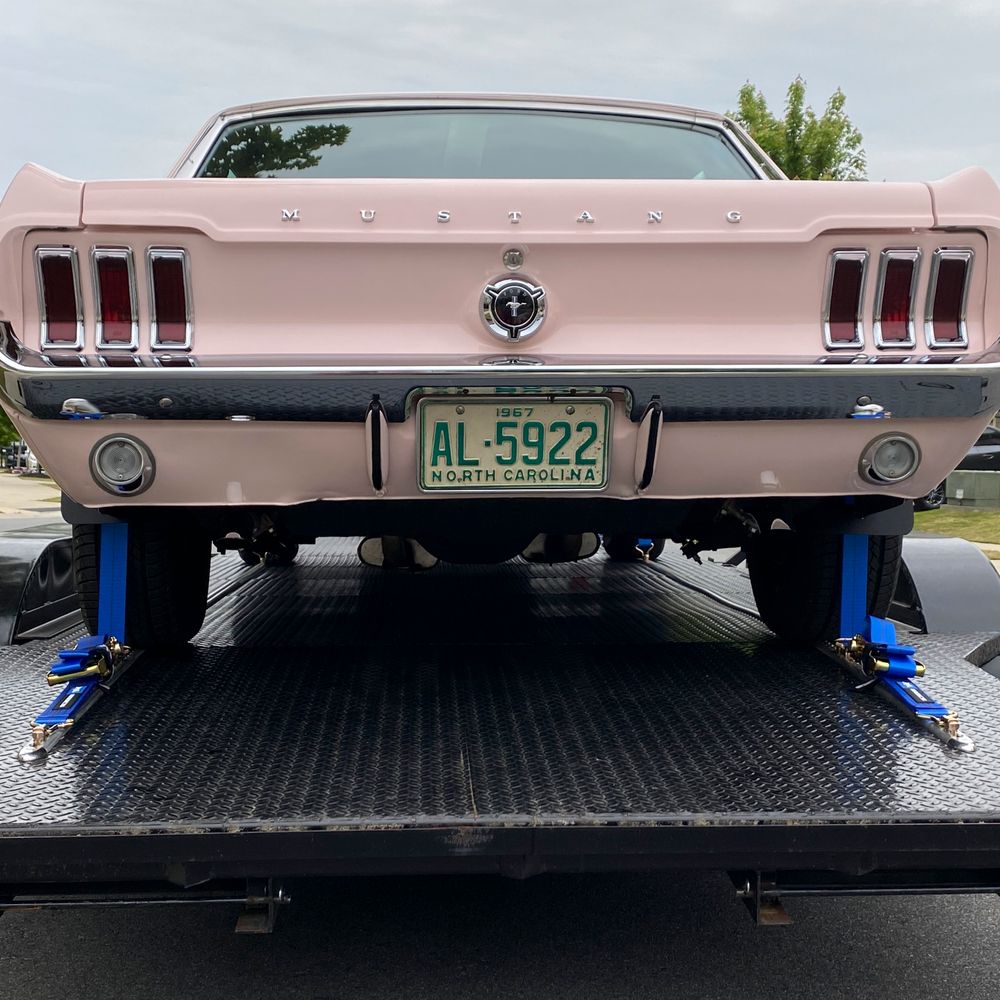 Including four 10' straps, four strap wraps and one large tool bag, one of the advantages of Mac's Tire Block Strap Pack is that no part of the tie downs come into contact with the hard surfaces of your vehicle and you always have a place to store your straps. By avoiding contact with the axle, chassis or wheels, risk of marring fine finishes is eliminated. This low-profile design is also favored by car owners who prefer a tie down that doesn't obscure any of the car's detail.