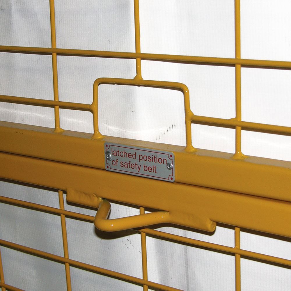 - Forklift safety restraint secures work platform to forklift