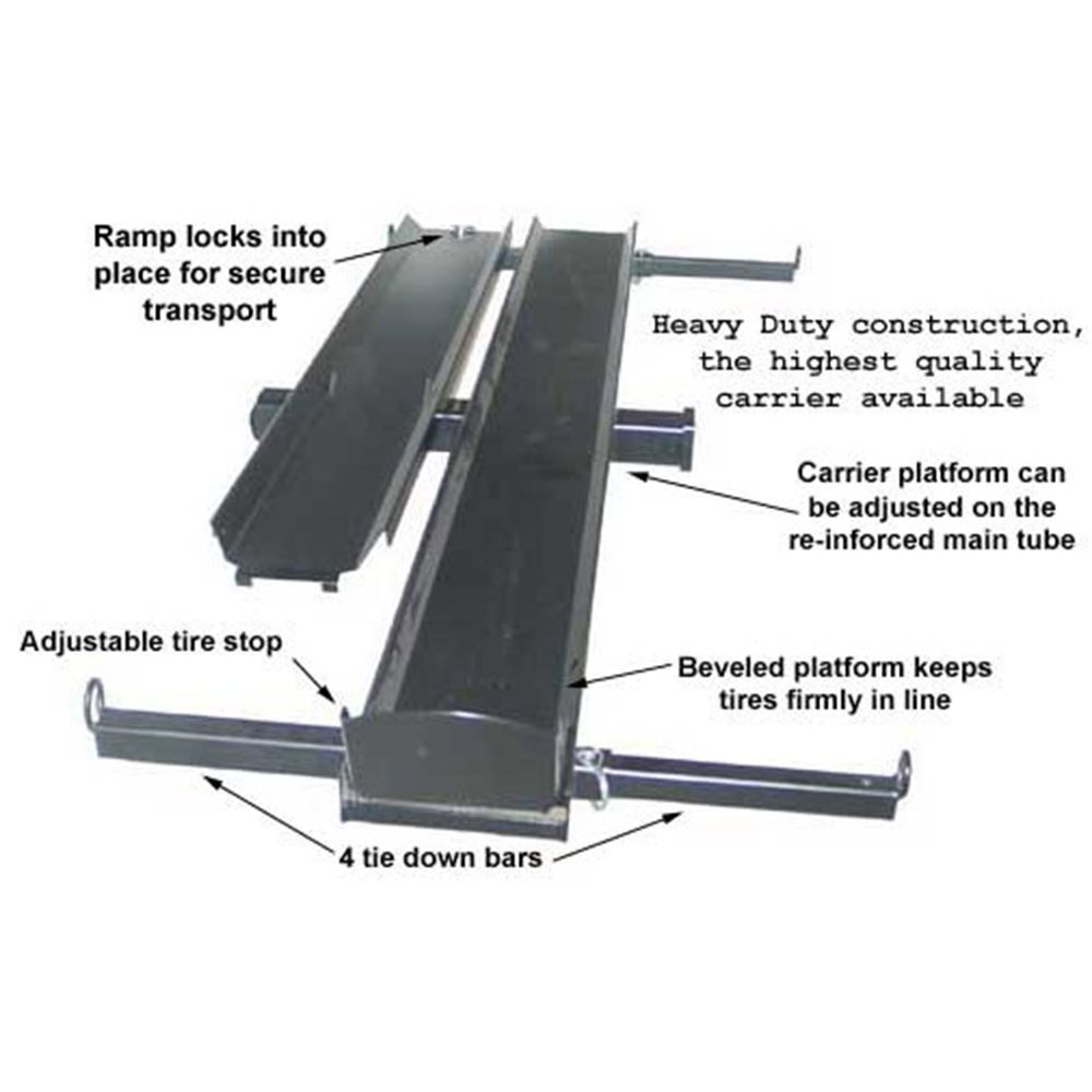 - Includes a 71" long ramp that stores conveniently on the carrier