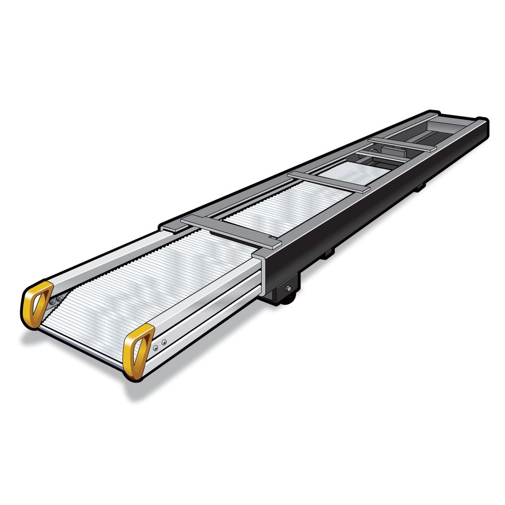 The Magliner Slider retractable underbody truck ramps make loading and unloading safe and easy. Featuring a Twin-Tooth surface for excellent traction in either direction, this Slider ramp has a 26" width to fit a standard truck chassis. Each ramp is conveniently shipped completely assembled for quick installation. Once installed, simply roll out the ramp and securely store it underneath the truck.
