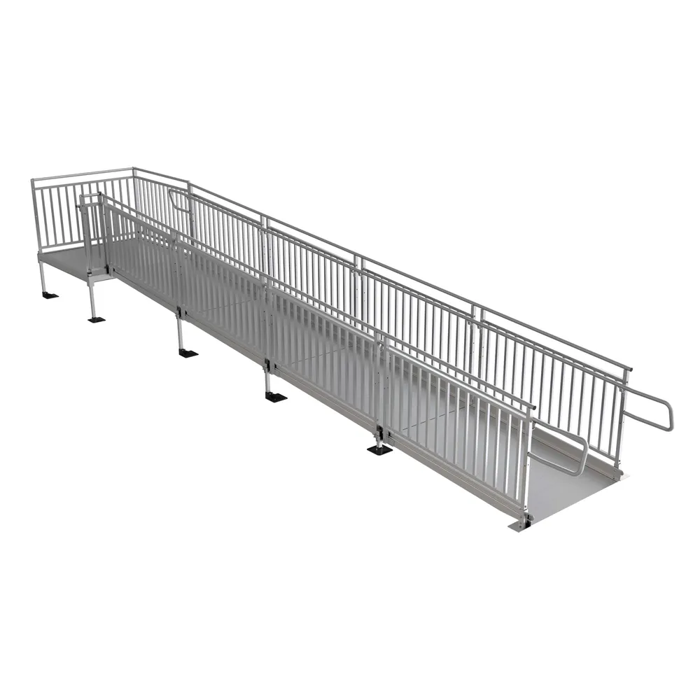 This kit includes a 24' ramp, platform, picketed handrail, end loops, legs, and feet. Installation is quick and easy with universal components, pre-assembled sections, and independently adjustable legs. If your mobility needs change, the PATHWAY HD system can easily be reconfigured, moved, or expanded.