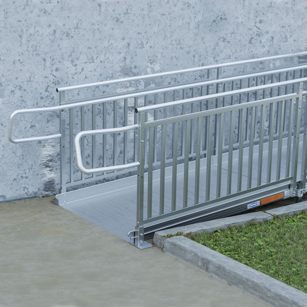 Whether for your home or business, the EZ-ACCESS ® PATHWAY HD modular ramp systems provide safe, customizable, and code-compliant access. The high quality aluminum construction is lightweight with virtually no maintenance and has a clean appearance to fit with any building. Each ramp features an innovative Gecko Grip raised-rib tread, providing excellent traction both entering and exiting the system. Smooth, continuous handrails and 4" side rails provide additional safety.