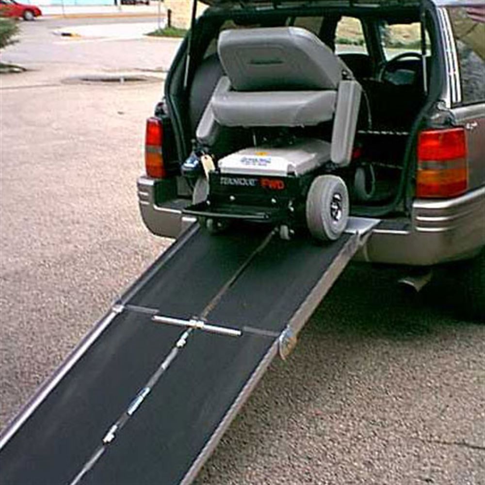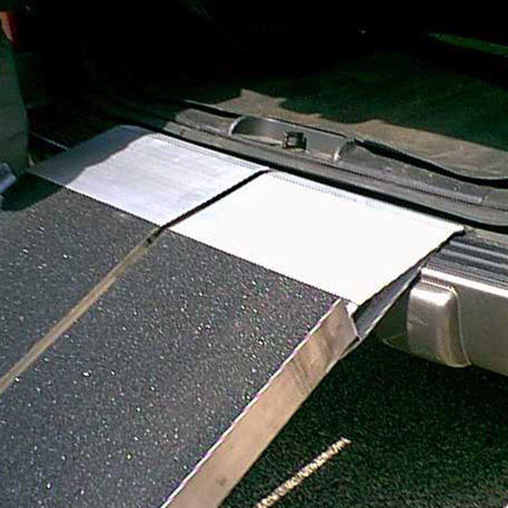The UTW ramp features an extended upper lip that is designed for accessing the rear hatch of a van or SUV. The UTW provides a smooth transition from the ramp over the rear door seal and bumper. This all in one ramp also works on side doors, steps, and porches. The UTW portable rear door van ramp is the perfect solution for someone who needs to load their wheelchair or scooter in the rear door or hatch of a van or sport utility vehicle and does not want a permanently attached ramp or lift. This ramp has an innovative extended hook that allows you to clear the bumper and rear door seal on your vehicle for rear door entry, but still operates like a standard multifold ramp. It works for side doors, steps, and porches as well. This ramp operates in the same fashion as our popular multifold portable wheelchair ramps. The UTW ramp has a center joint design that eliminates pinch points and adds strength to the highest stress area of the ramp.