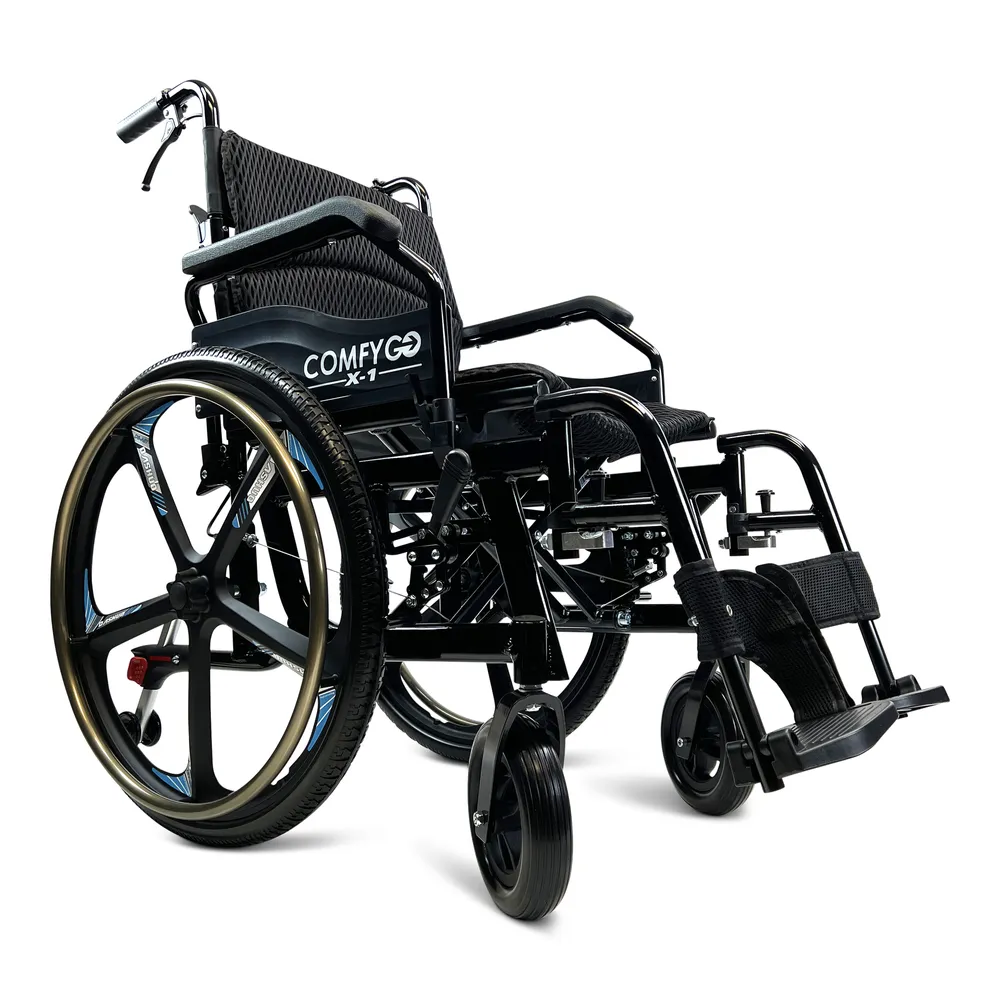 ComfyGo Manual Wheelchair, 24" Quick-Detach Aluminum Wheels - Black